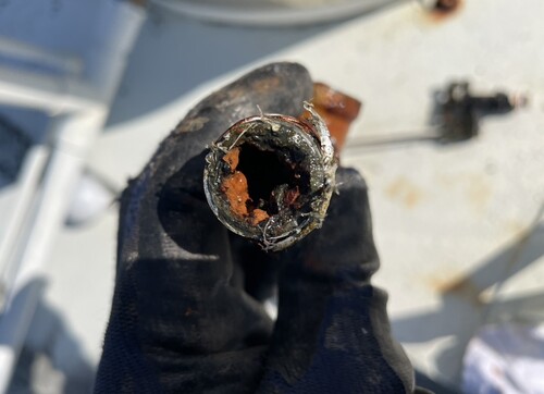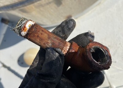 詳しく中を見たところ、銅製のパイプで腐食により