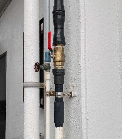お湯のパイプの根本の部分から水が漏れ出してしまっている